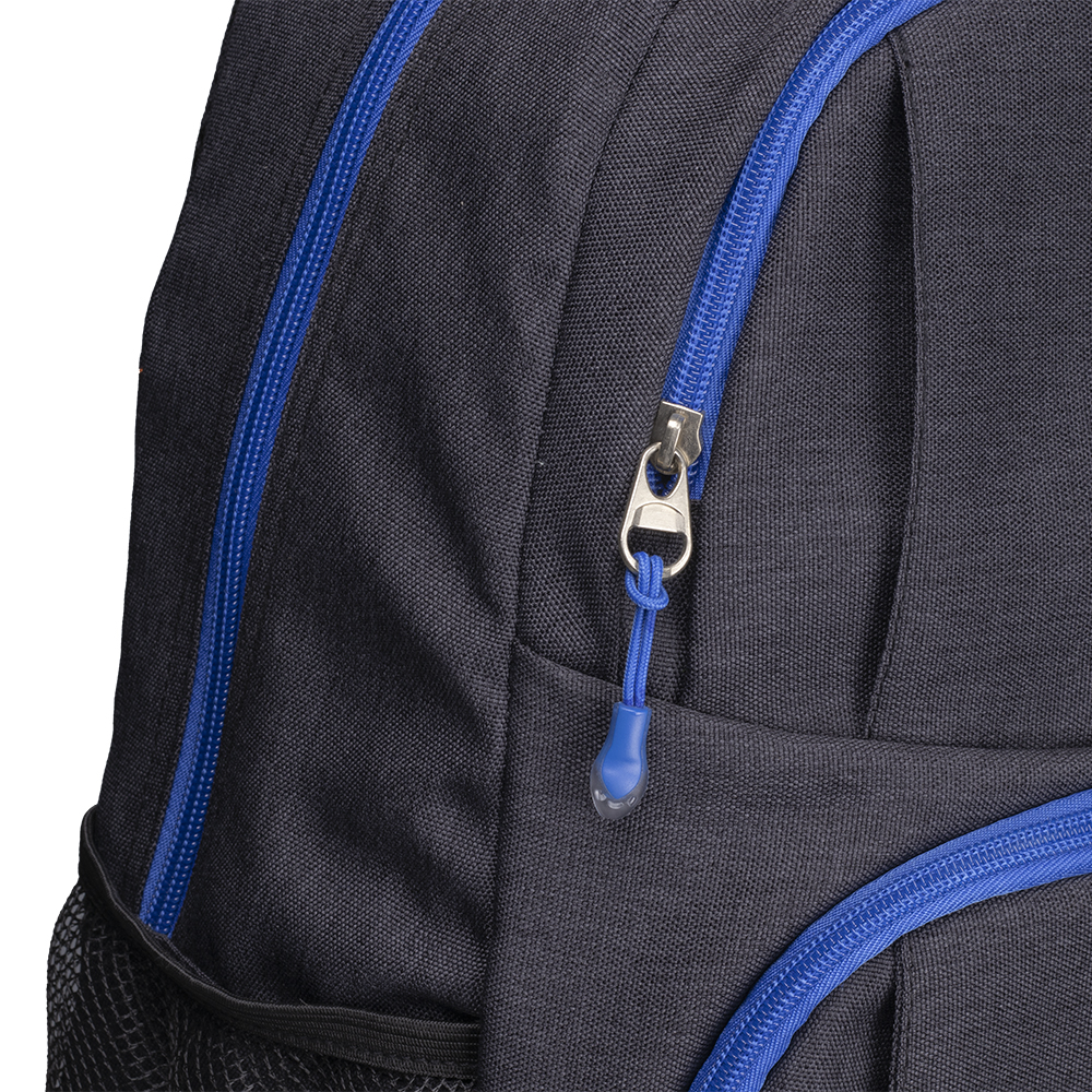 Mochila para notebook em tecido poliéster.Parte externa:Dois bolsos frontais com ziper.Dois bolsos laterais em malha.Alça de mão e ombro.Parte interna:Compartimento acolchoado p/notebook, 41x28cmTamanho total do Notebook – 15.6″Porta cartões e canetas.Toda forrada.